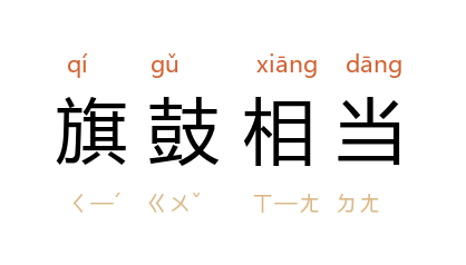 《官场现形记·第三五回》:「何孝先自办此事以来,居然别开生路,与申大善士一帮,旗鼓相当,彼此各不相上下。」
