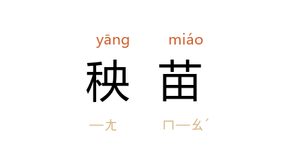 ⒈ 植物的幼苗。通常指稻禾的幼苗。