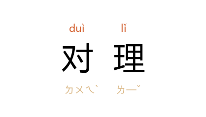 引元·谷子敬《城南柳·第三折》:「左右,押这厮去寻那先生来对理。」《醒世恒言·卷三三·十五贯戏言成巧祸》:「我不管闲帐,只是你家里有杀人公事,你须回去对理。」