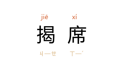 引元 关汉卿 《谢天香》第一折:“我直到揭席时来,到家时,我又索趲下些功夫忆念尔。”元 王实甫 《丽春堂》第二折:“怎当他酬酢处两三巡,揭席时五六盃,醉的我将官锦淋漓。”