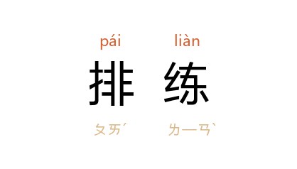 引巴金 《团圆》:“到文工团排练节目去。”海翔 《啊,生活的浪花》:“哦,我们加班排练,下星期就彩排了。”