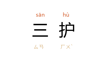 引唐 慧苑 《华严经音义》卷下:“护谓三护,亦曰三监。女人志弱,故藉三护:幼小父母护,适人夫壻护,老迈儿子护。”清 俞樾 《茶香室三钞·女人三护》:“按儒者所谓三从,佛书谓之三护。”
