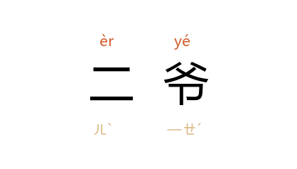 ⒈ 旧时对排行第二的男子的敬称。旧时对仆役的称呼。
