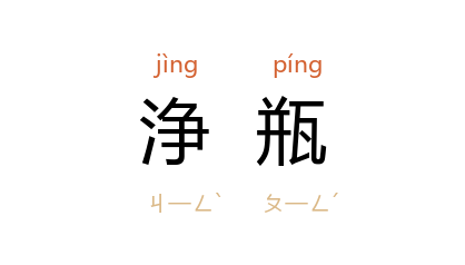 引《释氏要览》卷中:“浄瓶,梵语军迟,此云瓶,常贮水,随身用以浄手。”