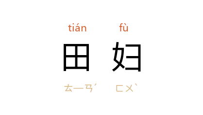 引唐 杜甫 《秋雨叹》诗之二:“禾头生耳黍穗黑,农夫田妇无消息。”唐 杜牧 《杭州新造南亭子记》:“有罪罪灭,无福福至,生人唯罪福耳,虽田妇稚子,知所趋避。”清 赵翼 《横塘曲》:“红妆伴客酒杯前,此景也羞田妇见。”
