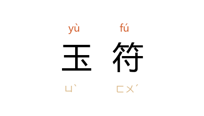 ⒈  玉制的信物。特指玉质的鱼形佩饰。
