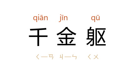 引晋·陶渊明〈饮酒诗〉二〇首之一一:「客养千金躯,临化消其宝。」唐·杜甫〈哀王孙〉诗:「豺狼在邑龙在野,王孙善保千金躯。」