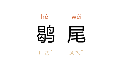 引《后汉书·崔寔传》:“钧 时为虎賁中郎将,服武弁,戴鶡尾,狼狈而走。”《晋书·惠帝纪》:“颖 府有九锡之仪, 陈留王 送貂蝉文衣鶡尾。”元 张昱 《昔游》诗:“冠翘鶡尾朱袍盛,马顿金羈玉面斜。”