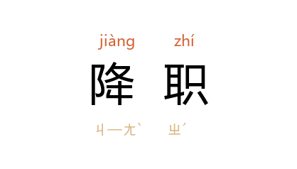 引宋 叶适 《故礼部尚书龙图阁学士黄公墓志铭》:“俄知 婺州,坐不发 兰溪 知县赃罪降职罢。”清 姚鼐 《<食旧堂集>序》:“先生在 临安 三年,以吏议降职,遂返 丹徒。”魏巍 《东方》第三部第十四章:“师党委根据批判从严、处理从宽的原则,党内给以留党察看的处分,行政上降职,到第六连担任连长。”