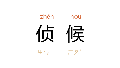 引《三国志·魏志·牵招传》:“招 既教民战陈,又表復 乌丸 五百餘家租调,使备鞍马,远遣侦候。”《金史·乌古论长寿传》:“统军司募人侦候 临洮 消息, 长寿 应募,馘二人,擒一人,问得 临洮 及 夏 兵事势。”明 唐顺之 《条陈蓟镇练兵事宜》:“而属夷一二不逞者又为之侦候乡导,是以 辽 之前屯, 蓟 之 滦 东,其患日寻而不息也。”