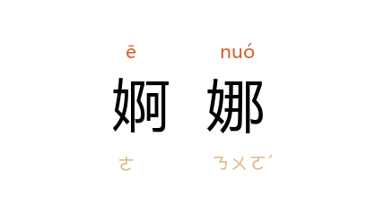 ⒈ 轻盈柔美的样子。也作「阿那」、「?娜」。
