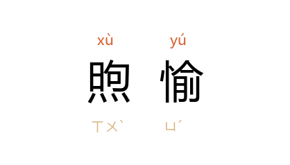 引唐 储光羲 《田家即事答崔二东皋作》诗之一:“煦媮命僮僕,可以树桑麻。”唐 元稹 《后湖》诗:“郑公 理三载,其理用煦愉。”明 唐顺之 《周襄敏公传》:“公既素豁达不拘,謭有帅臣体裁,又善煦愉接下。”常任侠 《春曦之歌》:“﹝光芒﹞如一慈母,赐诸物以煦愉的和祥。”