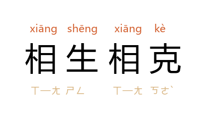 ⒈ 金、木、水、火、土五行之互相衍生、互相克制。即木生火,火生土,土生金,金生水,水生木;木克土,土克水,水克火,火克金,金克木。