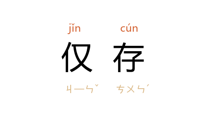 引《荀子·强国》:“仅存之国,危而后戚之。”《史记·张仪列传》:“四战之后, 赵 亡卒数十万, 邯郸 仅存。”宋 何坦 《西畴常言》:“仅存之国,厉民以自养,而无復有政治也。故其君民相与危寄,惴惴然朝不谋夕矣。”