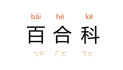 ⒈ 单子叶植物纲的一科。通常为多年生草本,地下有根状茎、球茎、块茎或鳞茎。花多为两性。花被片六枚,排成两轮。果实为蒴果或浆果。广布于温带和亚热带。包括百合、郁金香、黄精、贝母、葱、蒜、洋葱、黄花菜等。