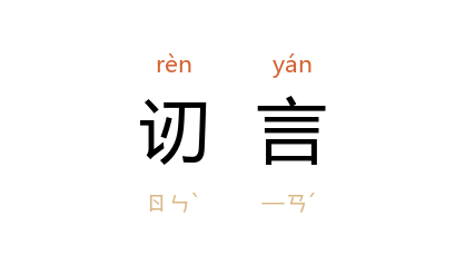 引语本《论语·颜渊》:“司马牛 问仁。子曰:‘仁者其言也訒。’”明 吕坤 《呻吟语选·涵养》:“平居时有心訒言,还容易,何也,有意收歛故耳。”明 归有光 《隆庆元年浙江程策》之四:“司马牛 多言而躁,所以言訒言也。”清 王夫之 《读四书大全说·论语·阳货篇八》:“所谓‘发愤刊落’者,即訒言之极致而无言也。”