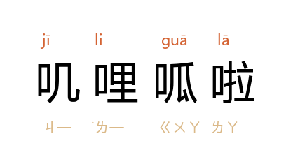 引曹禺 《日出》第二幕:“喂,博士,你别老这么叽哩呱啦地翻洋话好不好?”曹禺 《原野》第一幕:“半夜里,你一个人在房里叽哩呱啦地干什么?”