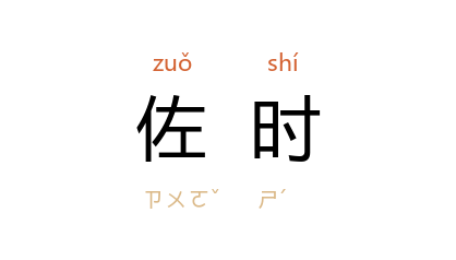 引汉 张衡 《归田赋》:“游都邑以永久,无明略以佐时。”李善 注:“言久淹滞於京都,而无知略以匡佐其时君也。”晋 葛洪 《抱朴子·释滞》:“欲少留,则且止而佐时;欲昇腾,则凌霄而轻举者,上士也。”唐 骆宾王 《上吏部侍郎帝京篇启》:“君侯蕴明略以佐时,虚灵臺以照物。”宋 王安石 《次韵元厚之平戎庆捷》:“文武佐时惭 吉甫,宣王 征伐自肤公。”