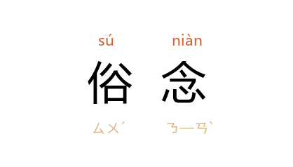 引唐 白居易 《玩松竹》诗之二:“幽怀一以合,俗念随缘息。”明 杨慎 《词品·丘长春梨花辞》:“丘长春 咏《梨花无俗念》云:‘春游浩荡,是年年寒食……’”《醒世恒言·独孤生归途闹梦》:“聆卿佳音,令人宿酲顿醒,俗念俱消。敢再求一曲,望勿推却。”