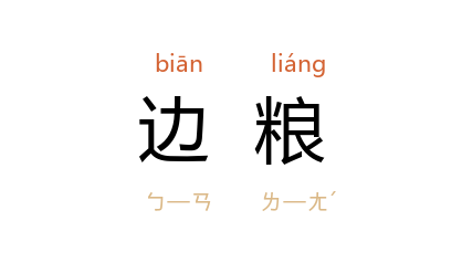 引《隋书·高祖纪下》:“勑盗边粮一升已上皆斩,并籍没其家。”《旧唐书·张俭传》:“俭 又广营屯田,岁致穀十万斛,边粮益饶。”明 余继登 《典故纪闻》卷十七:“今欲足边粮,其復输粟之旧制乎?”