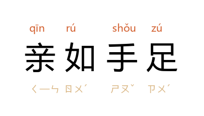 ⒈ 亲密得如同兄弟一样。手足,喻兄弟。