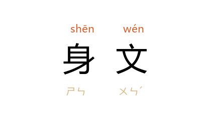 ⒈ 《左传·僖公二十四年》:“﹝介之推﹞对曰:'言,身之文也,身将隐,焉用文为?'”本谓人身的文饰,后以“身文”借指人际交往中的礼仪和言语修养。