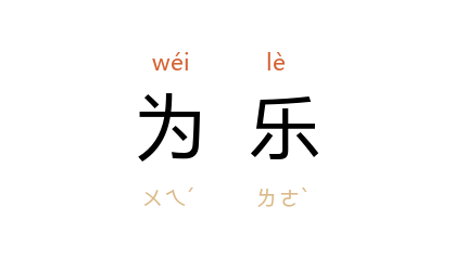 引《后汉书·灵帝纪》:“帝著商估服,饮宴为乐。”南朝 宋 鲍照 《拟行路难》诗之三:“含歌揽涕恆抱愁,人生几时得为乐!”《太平广记》卷三九四引 唐 薛用弱 《集异记·徐智通》:“明晨何以为乐?”