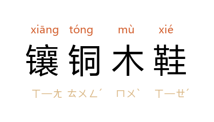 引姚雪垠 《长夜》三一:“从二门里慢慢地走出来的小小的镶铜木鞋底落在砖地上的叮当声,到窗外停止了。”自注:“从前缠小脚的女人们所穿的一种高跟鞋,底子是用木头做的,也有的怕磨损太快,加有铜底。”