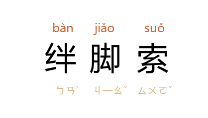 引《水浒传》第三二回:“心里越慌,看不见地下躧了一条绊脚索。树林里铜铃响,走出十四五个伏路小嘍囉来,发声喊,把 宋江 捉翻,一条麻索缚了。”柳杞 《好年胜景》二:“这是假跑哩,他们早安好了绊脚索,果不然,追过一个墙角,就中了他们的牢笼计。”