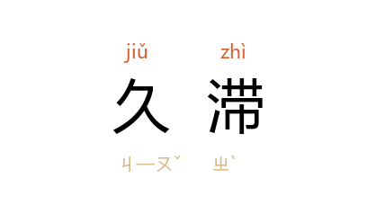 引唐 顾况 《游子吟》:“游子悲久滞,浮云鬱东岑。”《说岳全传》第七九回:“幽魂久滞,忠节应旌。”