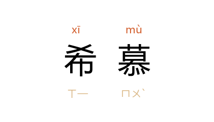 引晋 袁宏 《后汉纪·顺帝纪》:“﹝ 马寔 ﹞昼诵经书,夜习弓兵,希慕名流,交结豪杰。”宋 罗大经 《鹤林玉露》卷十三:“东坡 希慕 乐天,其诗曰:‘应似 香山 老居士,世缘终浅道根深。’”《红楼梦》第七九回:“贾政 又深恶 孙 家:虽是世交,;不过是他祖父当日希慕 寧 荣 之势,有不能了结之事,挽拜在门下的,并非诗礼名族之裔。”