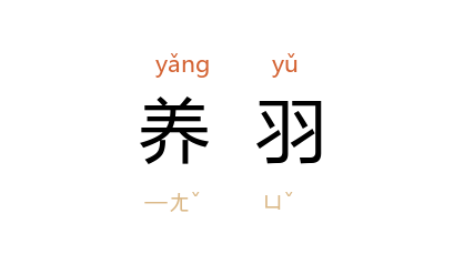 ⒈ 生长羽毛。传说 东汉 杨宝 九岁时,至 华阴 山北,见一黄雀为鸱枭所搏,坠于树下, 宝 取雀以归,置巾箱中,食以黄花,百馀日毛羽成,乃飞去。是夜有黄衣童子以白环四枚赠 宝。事见 南朝 梁 吴均 《续齐谐记》。后遂以“养羽”作为咏黄雀的典故。参见“衔环”。