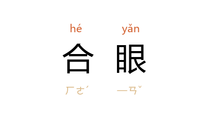 ⒈ 闭上眼睛。常用于指睡眠、休息。也作「合眼」、「阖眼」。