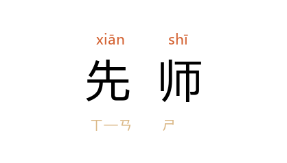 ⒉ 万代之师孔子。隋文帝时谥孔子为「先师尼父」,后世尊称孔子为「先师」。