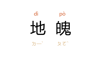 引唐 李岩 《五言》诗:“天魂生白虎,地魄产青龙。”清 黄景仁 《月下杂感》诗:“闻道 姮娥 嫁,于今是 结璘。河山收地魄,宫闕烂天银。”按,《云笈七籤》卷五五:“日者天之魂,月者地之魄。”