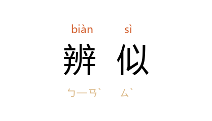 ⒈ 辨别汉字中某些意义显别、笔画相似的字。《字汇》卷末有“辨似”。