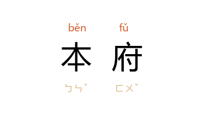 引清 孔尚任 《桃花扇·争位》:“列侯请了。小弟乃本府参谋。”《二十年目睹之怪现状》第四六回:“不多几天, 继之 回来了,又到本府去禀知。”