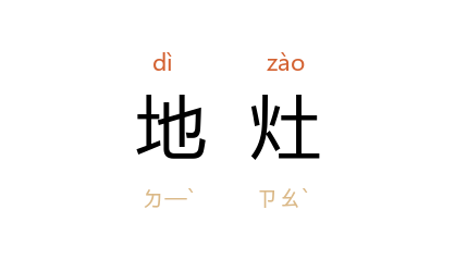 引李季 《玉门儿女出征记》五:“千军万马向西走,那一夜宿营在一个村中。村子外边挖地灶,做一顿小米饭庆祝国庆。”《新华日报》1944.2.8:“砍掉树枝,搭起帐篷来,挖起地灶,就地采集了一些野菜来吃。”