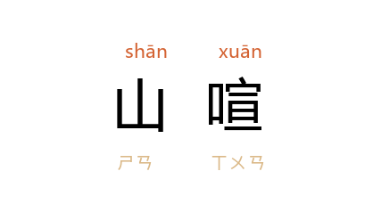 引《法苑珠林》卷二十:“忽见三道宝阶从空而降,有数十梵僧乘阶而下,入堂礼拜,手擎香鑪,遶 顗 三帀,久之乃灭。及大众同见,惊叹山喧。”清 钱谦益 《石镜》诗:“山喧海闹篱门外,燕乳鶯啼环堵中。”