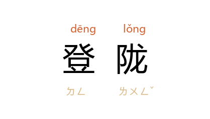 引南朝 梁简文帝 《艳歌行》之一:“弋猎多登陇,酣歌每入丰。”唐 赵嘏 《织锦窦家妻》诗:“岂知登陇远,祇恨下机迷。”宋 陆游 《岁莫感怀》诗:“昏昏杀气秋登陇,颯颯飞霜夜出师。”