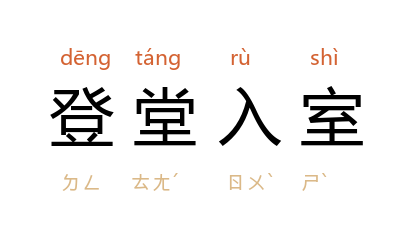⒈ 登上厅堂,又进入内室。比喻学问由浅入深、循序渐进、达到更高的水平。亦比喻学艺深得师传。