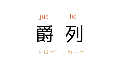 引《礼记·表记》:“其赏罸用爵列,亲而不尊。”《管子·四时》:“一政曰,论幼孤,舍有罪。二政曰,赋爵列,授禄位。”尹知章 注:“列,次也。”《韩诗外传》卷三:“颁其爵列、等级、田畴,以赏羣臣。”宋 曾巩 《代皇子延安郡王谢皇太后表》:“詎意仁恩,更崇命秩;抗等威於元宰,躋爵列於真王。”