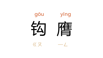 引《诗·小雅·采芑》:“簟茀鱼服,鉤膺鞗革。”毛 传:“鉤膺,樊缨也。”马瑞辰 通释:“《周官·巾车》:‘玉路,鍚樊缨。金路,鉤樊缨。’樊缨为五路所同,而言‘鍚’言‘鉤’各异,则鉤与樊缨不得为一。盖鍚当面,最上;鉤当頷,次之;樊缨当胷,又次之。”《文选·张衡<东京赋>》:“方釳左纛,鉤膺玉瓖。”薛综 注:“鉤膺,当胸也。”唐 刘禹锡 《伤我马词》:“烈火之具举,鉤膺之叠舞。”
