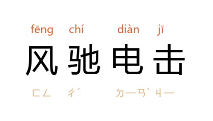 引《六韬·王翼》:“奋威四人。主择材力,论兵革,风驰电击,不知所由。”宋 陆游 《观运粮图》诗:“王师北伐如 宣王,风驰电击復土疆。”亦作“风驱电击”、“风驰霆击”。 《宋书·谢晦传》:“散骑常侍、驍骑将军 段宏 铁马二千,风驱电击,步自 竟陵,直至 鄢郢。”陈炽 《庸书·议院》:“华盛顿 以编户之细民,苦 英 人之虐政,风驰霆击,崛起 美洲。”