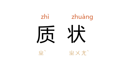 引《晋书·张华传》:“园中茅积下得一白鱼,质状殊常,以作鮓,过美。”五代 王定保 《唐摭言·节操》:“裴晋公 质状眇小,相不入贵。”宋 文同 《怪石铭序》:“当时不知何所得巨石,置讲堂之后,质状怪伟,势若飞动。”