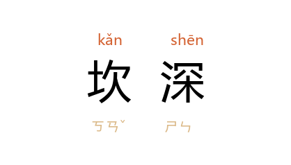 ⒈ 《周易》中的《坎》卦有险、陷等义,因以“坎深”喻险境。