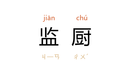 ⒈ 团体中指派监督厨师做菜的工作,或称负责监厨的人为「监厨」。