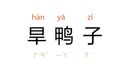 例如:「我已经学会游泳,不再是一只旱鸭子了。」