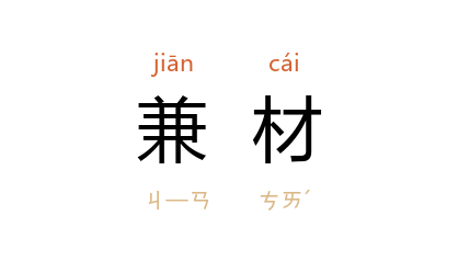引三国 魏 刘劭 《人物志·接识》:“故兼材之人,与国体同。欲观其一隅,则终朝足以识之;将究其详,则三日而后足。”明 谢肇淛 《五杂俎·事部三》:“新建 抗疏定乱,信文武之兼材。”清 王晫 《今世说·术解》:“方 名 其义,江 南 桐城 人,天才横溢,不让其兄。力矫健,能腾身屋上,履如平地。时推为兼才。”