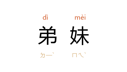 ⒈  称谓:(1)​ 称弟弟与妹妹。唐·杜甫〈九日〉诗五首之一:「弟妹萧条各何往,干戈衰谢两相催。」(2)​ 称弟弟的妻子。
